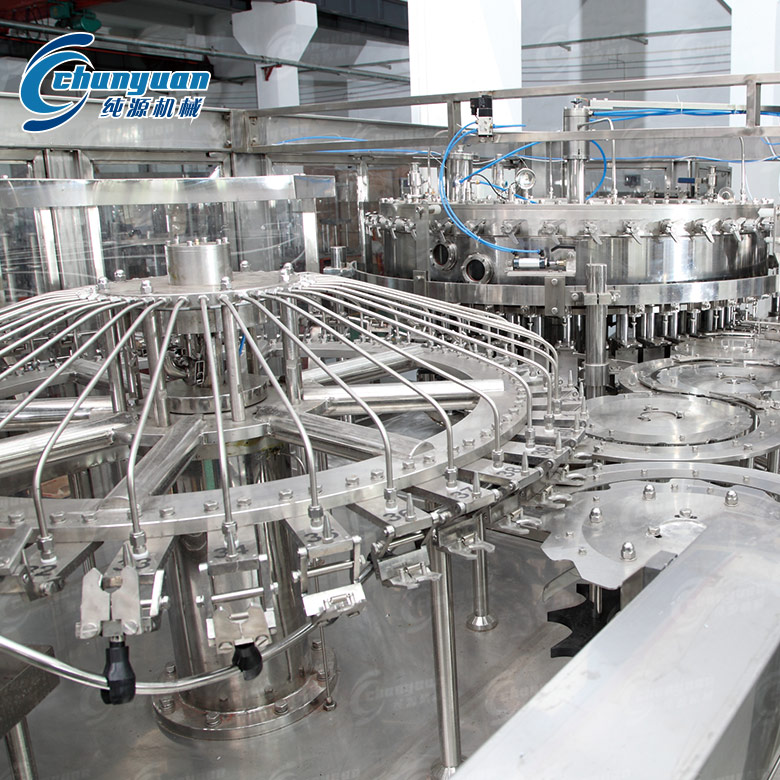 碳酸飲料機械是我國引進德國技術(shù),運用等壓灌裝原理自行設(shè)計制造,實現(xiàn)將液體灌裝到由沖瓶機送過來的洗好的瓶子中。