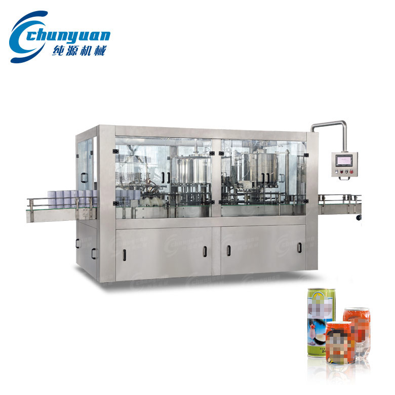 純源機(jī)械廠家制造供應(yīng)的易拉罐椰子汁飲料機(jī)械適用于灌裝椰子汁、果汁、茶飲料、功能性飲料等不含氣飲料的易拉罐灌裝。易拉罐飲料機(jī)械的生產(chǎn)能力為4000-36000灌每小時。